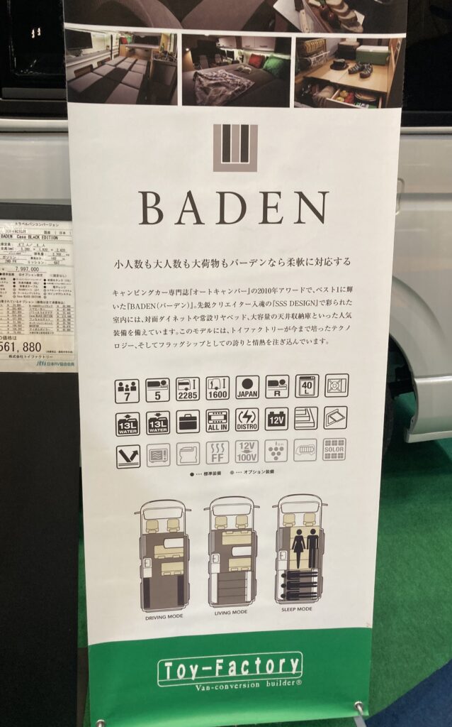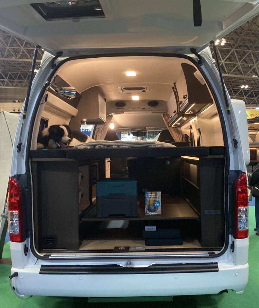 特に見たかったのが、ハイエースをベースとしたキャンピングカー。