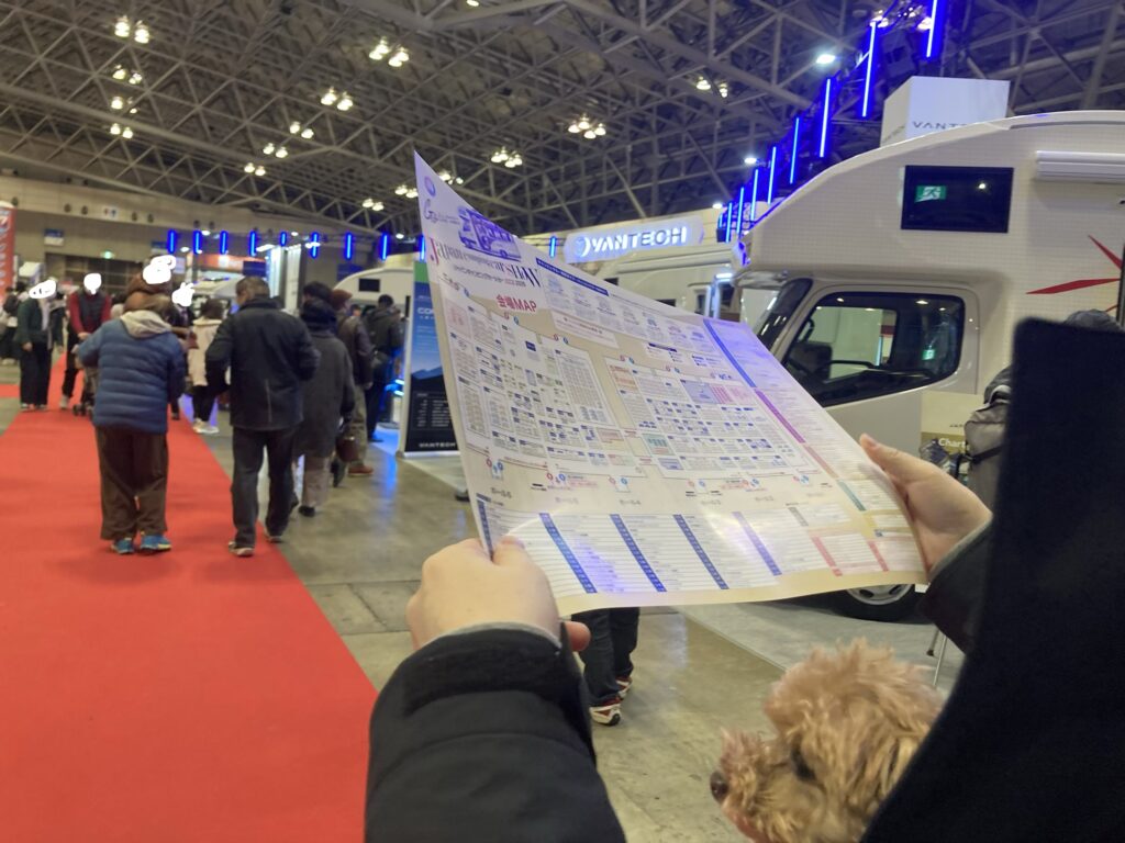 アジア最大級のキャンピングカーショーということで会場マップを基に数えてみたところ、